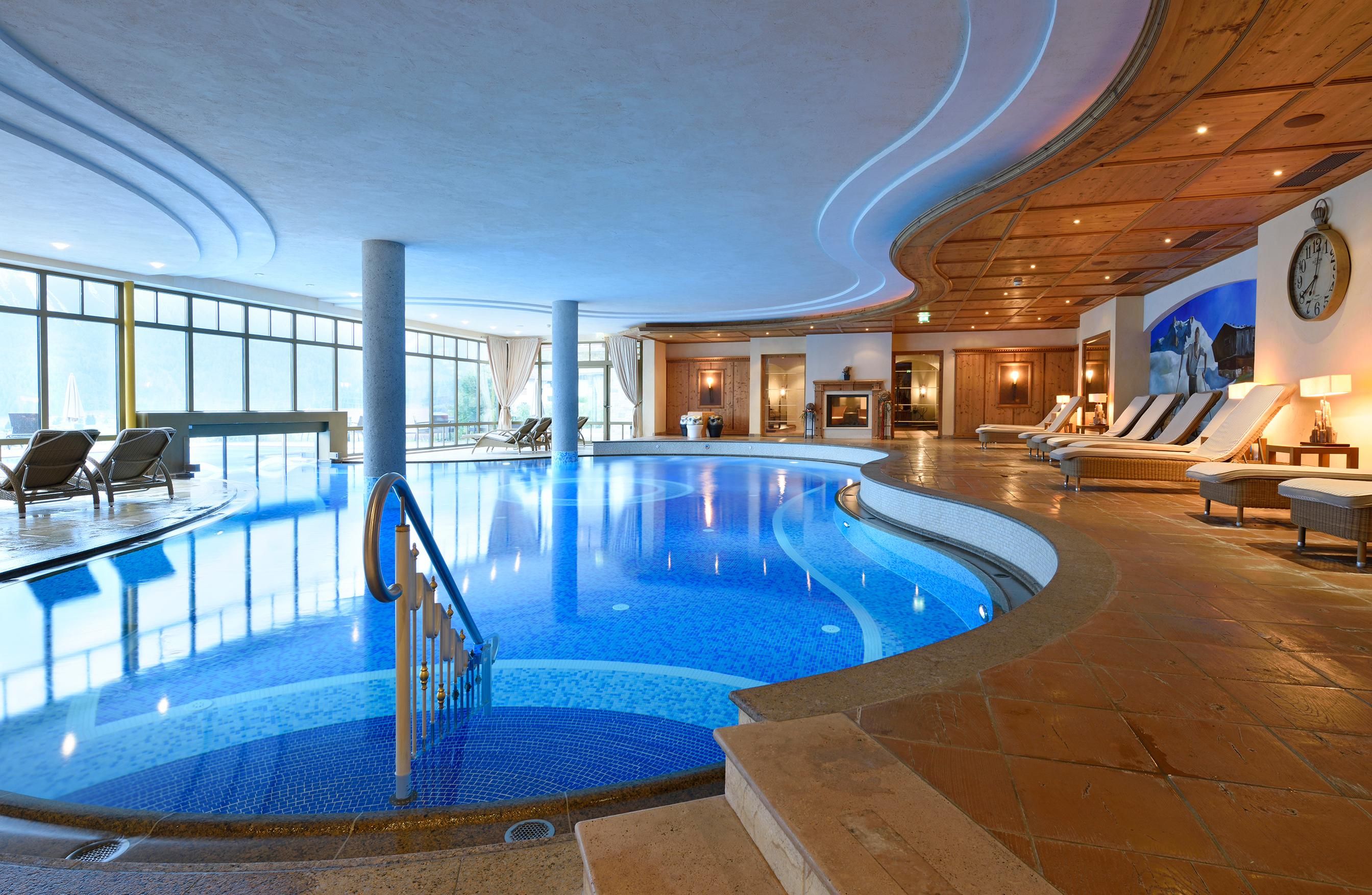 Voel je goed en ontspan in de Post ALPINSPA! Slechts 150 meter van het skigebied, direct aan het kerkpleinOp 3.000 m² wachten u een binnen- en buitenzwembad, whirlpool, familiesauna, biosauna, pekeltunnel, tepidarium en nog veel meer! Ruime ontspanningsruimtes en -zones, beautyafdeling met TOP-merken - Wellness PUR Restaurantkeuken op het hoogste niveau, wijnkaart met meer dan 1000 artikelenLaat u betoveren vanaf het eerste moment!Luxe levensstijl in de Alpen - in Hotel Post**** Superior: exclusieve landhuisstijl, luxueuze suites, fijne salons, POST ALPIN SPA op 2000 m², sauna en vitaliteitswereld en een zonneterras met het mooiste panoramische uitzicht in de Tiroler Zugspitz Arena.