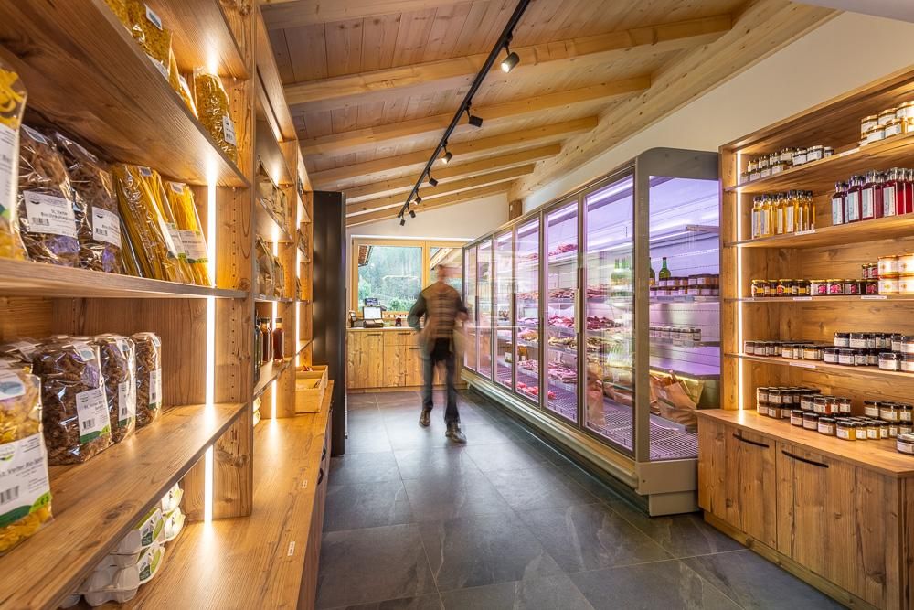 Regionale groenten, brood en kaas behoren tot het standaardassortiment van een goede boerderijwinkel. In de boerderijwinkel van Inzing tussen Innsbruck en Telfs verkoopt de plaatselijke slager echter ook zijn spekknoedels. Ook verkrijgbaar: Honing, schnaps en een echt broodje vlees en kaas in de snackbar van de winkel.