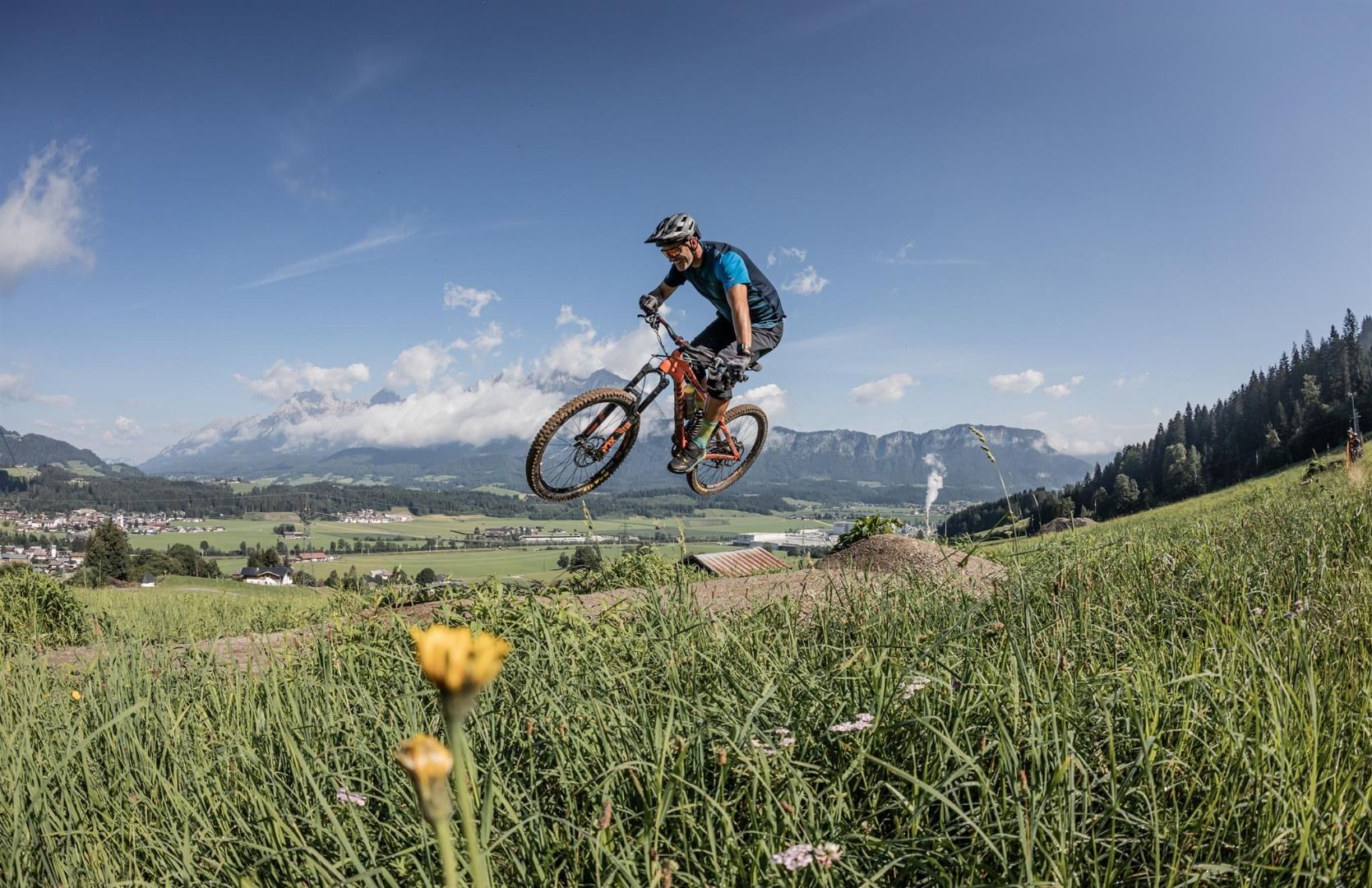 Voor beginners, volwassenen en kinderen, maar ook voor gevorderden om hun bochtentechniek te oefenen en als aanloop naar de springlijnen. Golftracks en schuine bochten met kleine tafels voor de eerste kleine sprongen. Doe je eerste trailervaring op en consolideer je bochtentechniek. Geen grote stenen, geen wortels, geen bomen, absoluut veilig.
