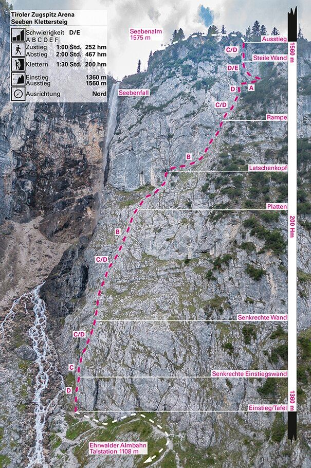Alpinisme heeft meestal een of meer toppen als doel, hoewel er ook klimuitrusting kan worden gebruikt. Bij de klettersteig ligt de nadruk daarentegen op de klimervaring. Een klettersteig in Tirol kan al dan niet naar een bergtop leiden. Het kan worden gedefinieerd als een beveiligde klim met kabels en voetsteunen. Zelf klimmen met een klettersteigset, die bestaat uit een klimgordel, een schokdemper, minstens twee touwen met karabijnhaken en een helm, is het allerbelangrijkste.
