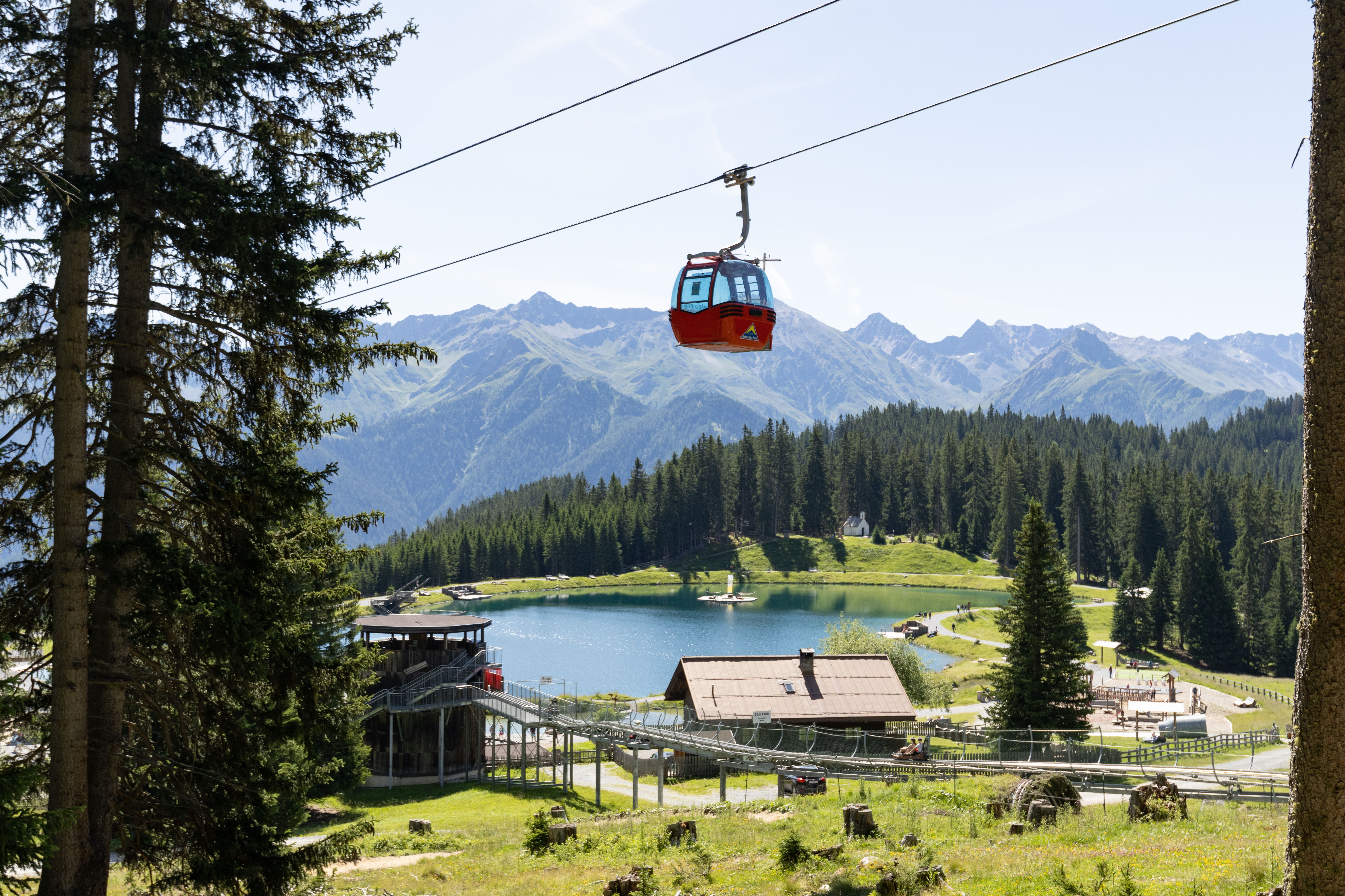 De gondellift brengt je in minder dan 10 minuten bovenop de Alpkopf (2.023 meter). Vanaf het bergstation vind je verschillende gemakkelijke gezinswandelingen. Een niveau lager, bij het middenstation, wachten het avonturenpark Hög en de familieachtbaan Schneisenfeger bij een klein meer.