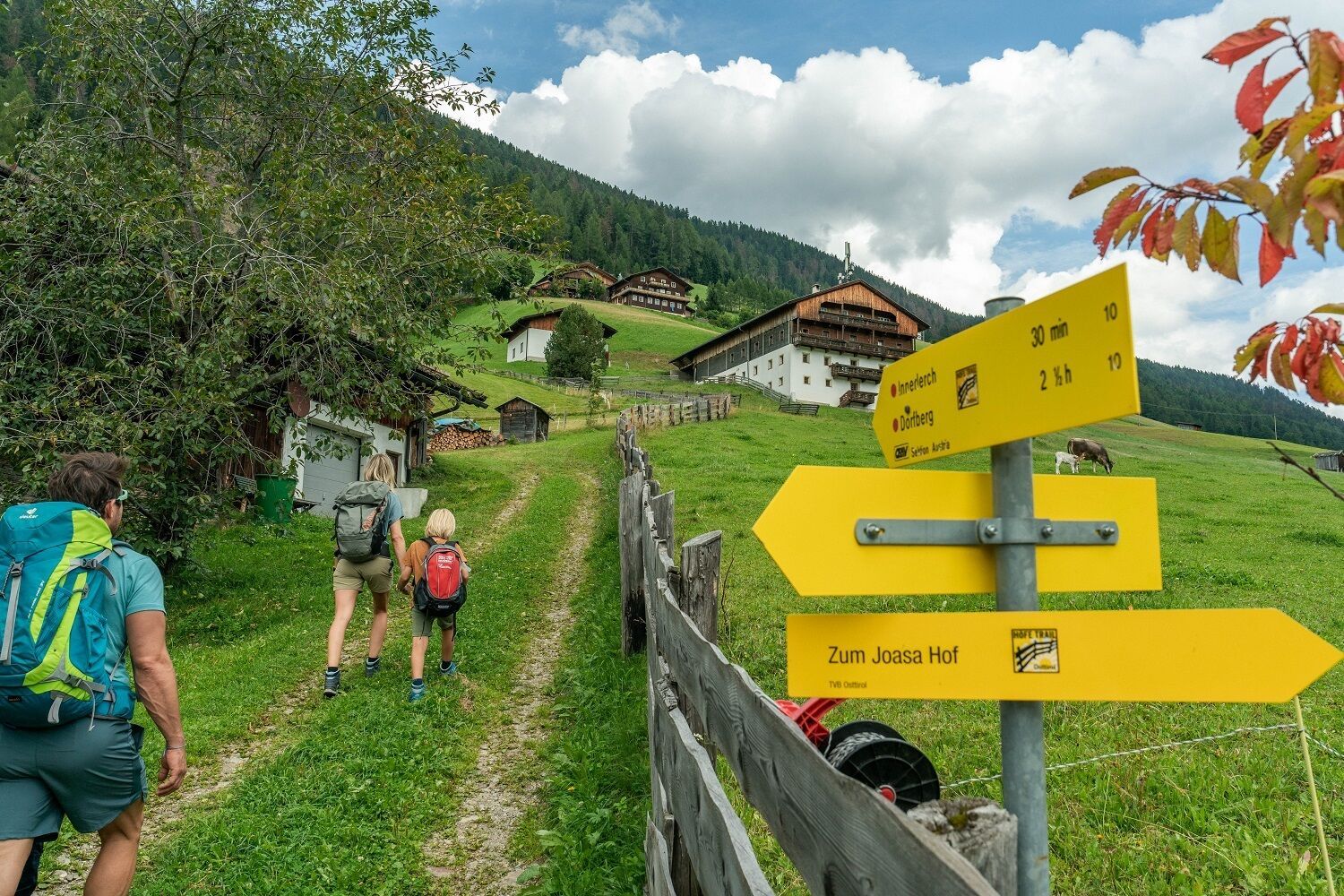 Vanaf St. Oswald voert de route eerst over een weidepad naar Kartitsch, waar de parochiekerk St. Leonhard staat. Leonhard. Daarvandaan, na het oversteken van de hoofdweg, gaan we verder in de richting van Kanter / Schuster. Van daaruit bereiken we de bedevaartskerk Hollbruck via de Hollbrucker Landesstraße.
