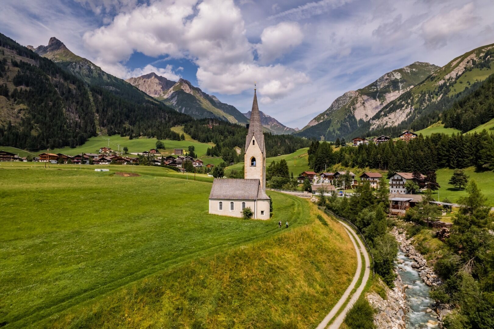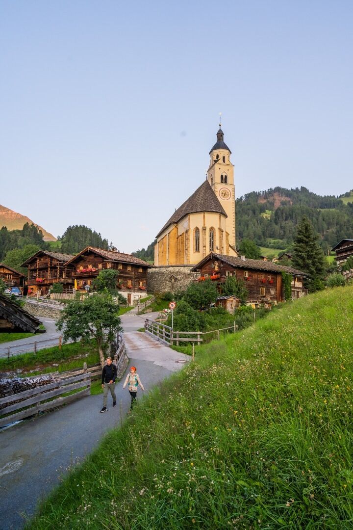 Vanuit Obermauern volgen we de kruisweg in de richting van Göriach en Virgen. Deze romantische landweg, die het bedevaartsoord Maria Schnee met Virgen verbindt, is waarschijnlijk de populairste bedevaartsroute in Tirol. We gaan verder over de "Weg van de Zintuigen" (start bij de T-bar van Virgen) door de heggenrijke velden van Virgen en over de "Iselweg" naar de brug over de Isel onder Mitteldorf. Vanaf hier lopen we langs de orografische rechteroever van de Isel over pad nr. 91 in de richting van Ganz en vanaf daar via een omweg omhoog naar de Romaanse kerk St. Na een bezoek en een rustpauze verlaten we deze cultuurhistorisch belangrijke plaats en bereiken we via Bichl het centrum van Matrei. We doorkruisen het dorp met de grote "plattelandskathedraal" van St. Alban, slaan proviand in in de regionale "dalwinkel" en beginnen de klim langs de Bretterwandbach naar de Klaunzer Berg via weg nr. 515, waar we ook de St. Veit Stöckl passeren. Uiteindelijk bereiken we de Kals-Matreier-Törl (2.207 m), het hoogste punt van de etappe. De gelijknamige berghut bij de pasovergang biedt een ruststop, lekker eten en een prachtig uitzicht op de vele omringende bergtoppen van drieduizend meter. Voor de afdaling naar Kals nemen we het steilere pad nr. 502B rechtstreeks naar Gasthof Tembler. Vanaf hier loopt onze route over de dorpsvelden naar het dalstation van de gondellift. We gaan verder van Großdorf naar Unterburg langs de Gesteigs. In Unterburg passeren we de beroemde Romaanse Sint-Joriskerk, die vrij op de dorpsvelden staat. Na de brug slaan we rechtsaf op pad nr. 31 en lopen we links van de beek naar de lager gelegen Ködnitz en bereiken we via pad nr. 39 direct de parochiekerk St.