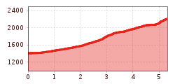 Middelzware tocht over rode bergpaden. Goede tred, basiskennis van de bergen en een goede conditie voor smalle paden en paadjes.