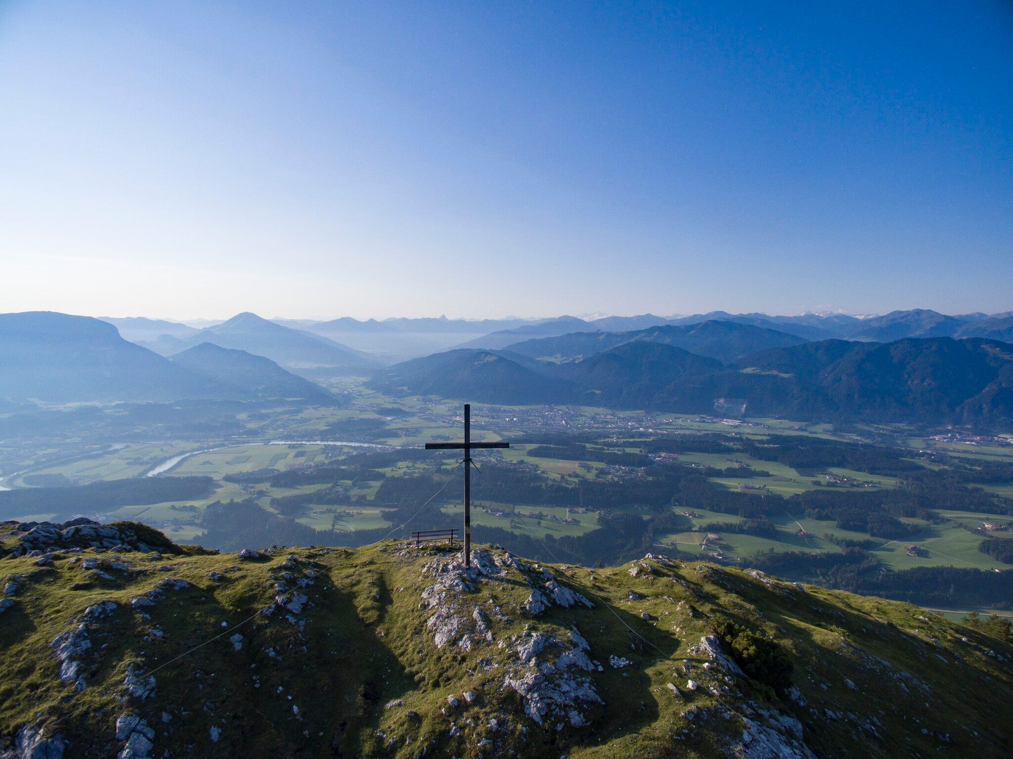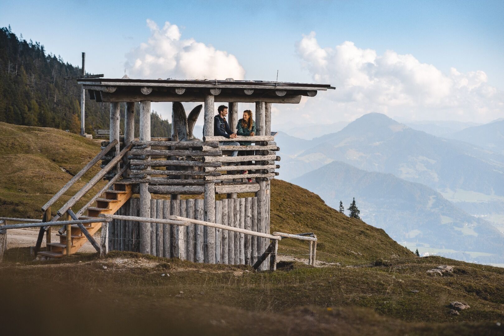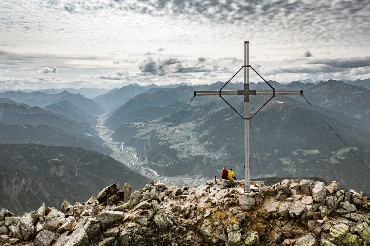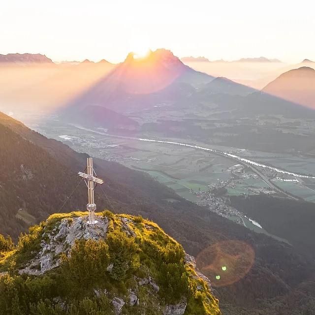 Op de top staat een indrukwekkend kruis op de top en een adembenemend panorama dat uitnodigt tot een lange pauze. De afdaling gaat via alpenweiden naar de Adlerhorst. De Adlerweg-telescoop biedt een prachtig uitzicht op talrijke bergtoppen in de Kitzbüheler Alpen en de Hohe Tauern. Vanaf hier kun je ook verder wandelen naar de nabijgelegen ijsgrot. Let op de actuele openingstijden op https://eishoehle.tirol.