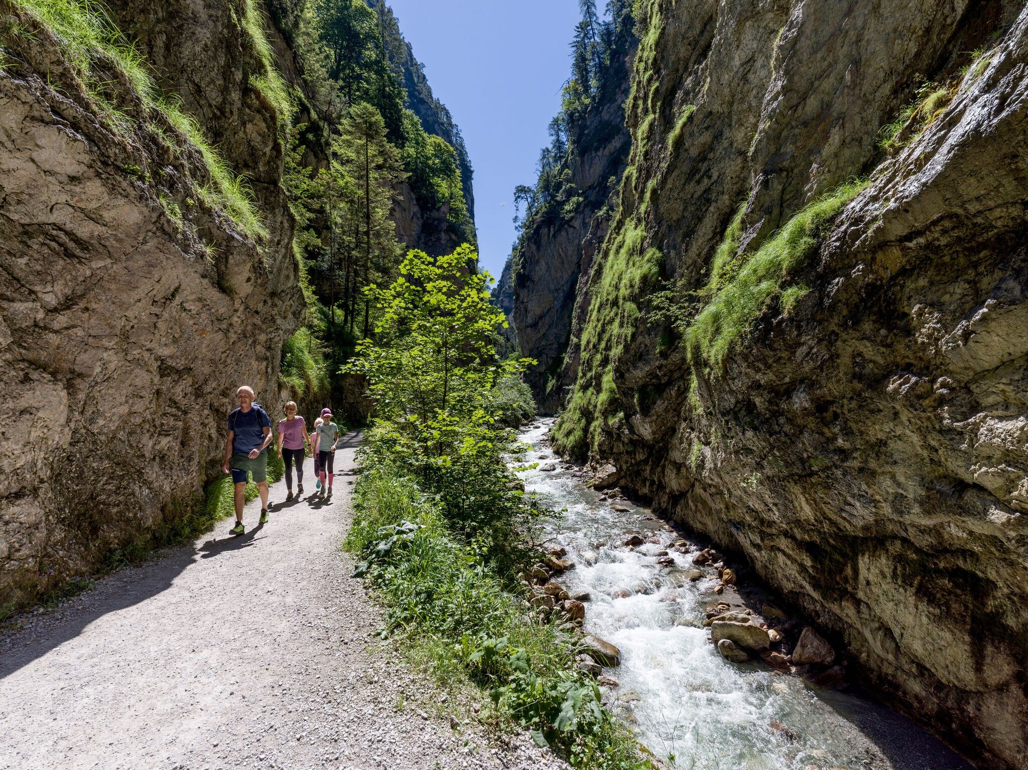 Te voet of met het treintje? In de Kundler Klamm hebben gezinnen de keuze hoe ze een van de mooiste kloven van Oostenrijk willen verkennen.