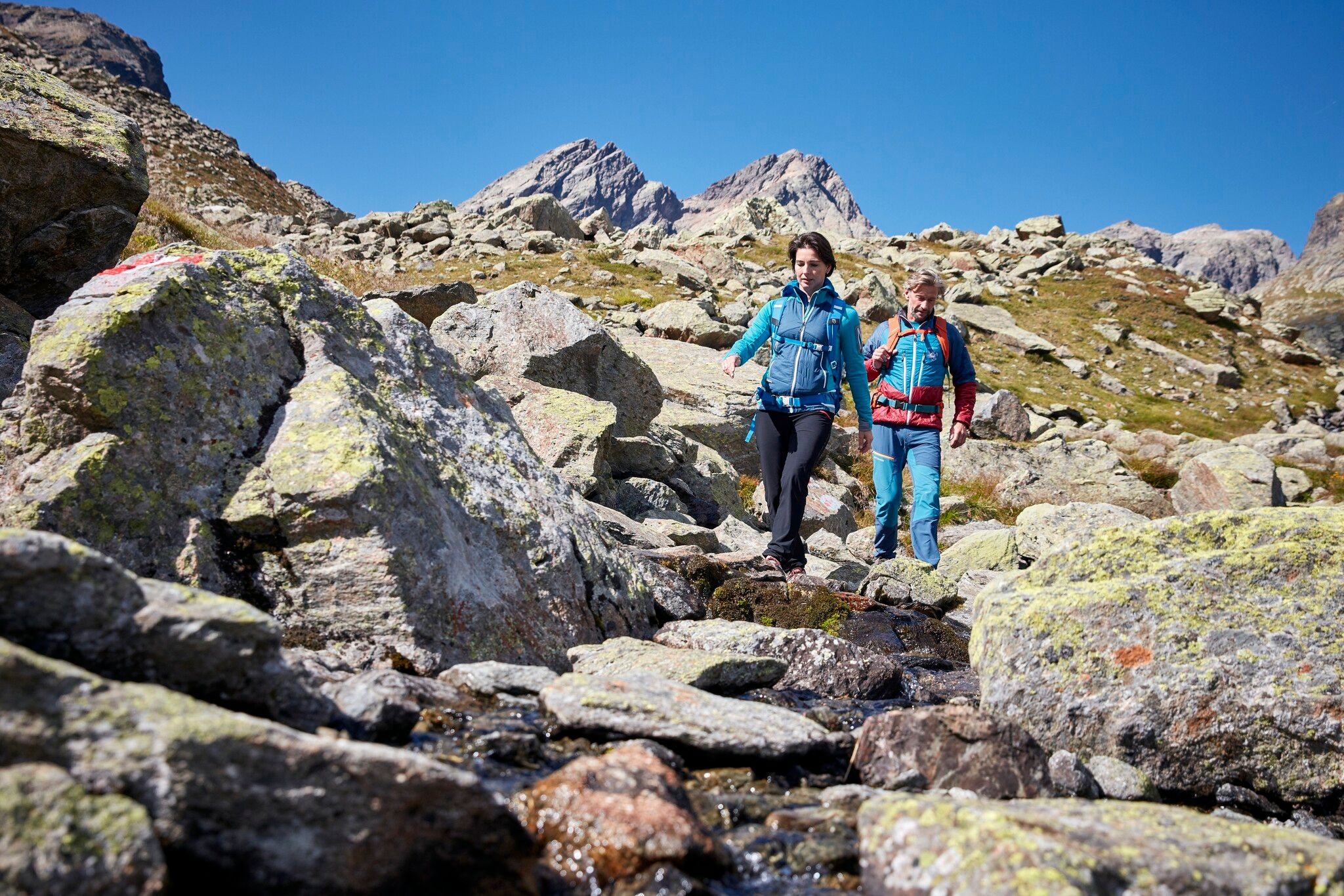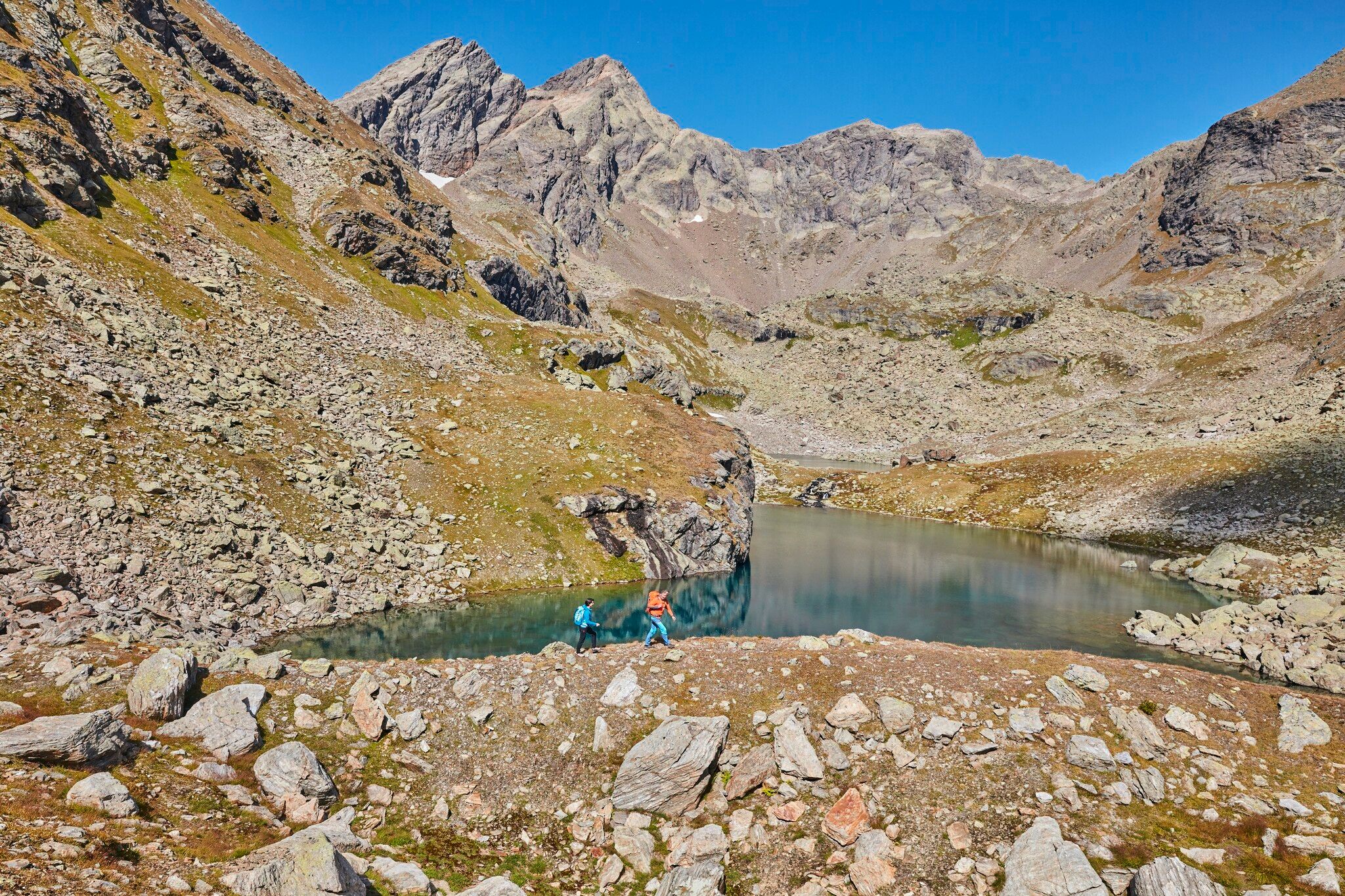 Vanaf de Edmund Graf hut leidt de eerste beklimming van de etappe naar het Kappler Joch op 2.672 meter hoogte. Hier begint langzaam de cirkel rond te worden - de eerste etappes verschijnen aan de andere kant van het dal. De verdere afdaling leidt naar de schilderachtige Blankaseen-meren en de Durrichalpe, een van de mooiste plekken in Paznaun. De volgende zware beklimming via het alpenpad naar de Spiduralpe op 2.120 meter kan worden beloond met een korte rustpauze op de alm. Vanaf de alm leidt het pad naar de Niederjöchl op 2.346 m, vanwaar je een mooie bergkam volgt naar de Pezinerspitze op 2.550 m. De Pezinerspitze is de laatste top en biedt een prachtig uitzicht in alle richtingen. Je kunt genieten van het terugkijken op sommige etappes die je hebt afgelegd. De afdaling gaat over de noordzijde met uitzicht op Strengen in het Stanzertal, langs de Kleingfallalpe naar Falgenair. Daar buigt het pad weer af richting het Paznaun-dal en na de eerste gehuchten van See bereik je via de weg het eindpunt van de etappe in het dorp See.