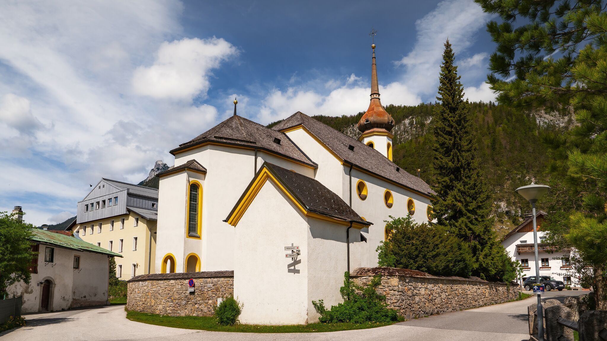 Terug op het barrièrevrij station in Scharnitz volg je het voetpad langs de Innsbruckerstraße in zuidelijke richting tot aan de Maria Hilf parochiekerk weer bereikt. Sla daar linksafde Hinterautalstraße in en je bent al terug bij het startpunt.