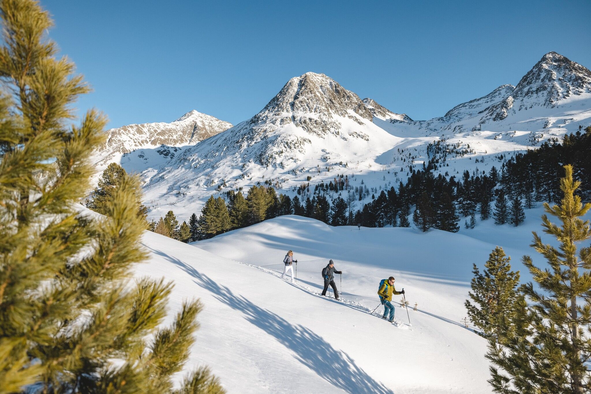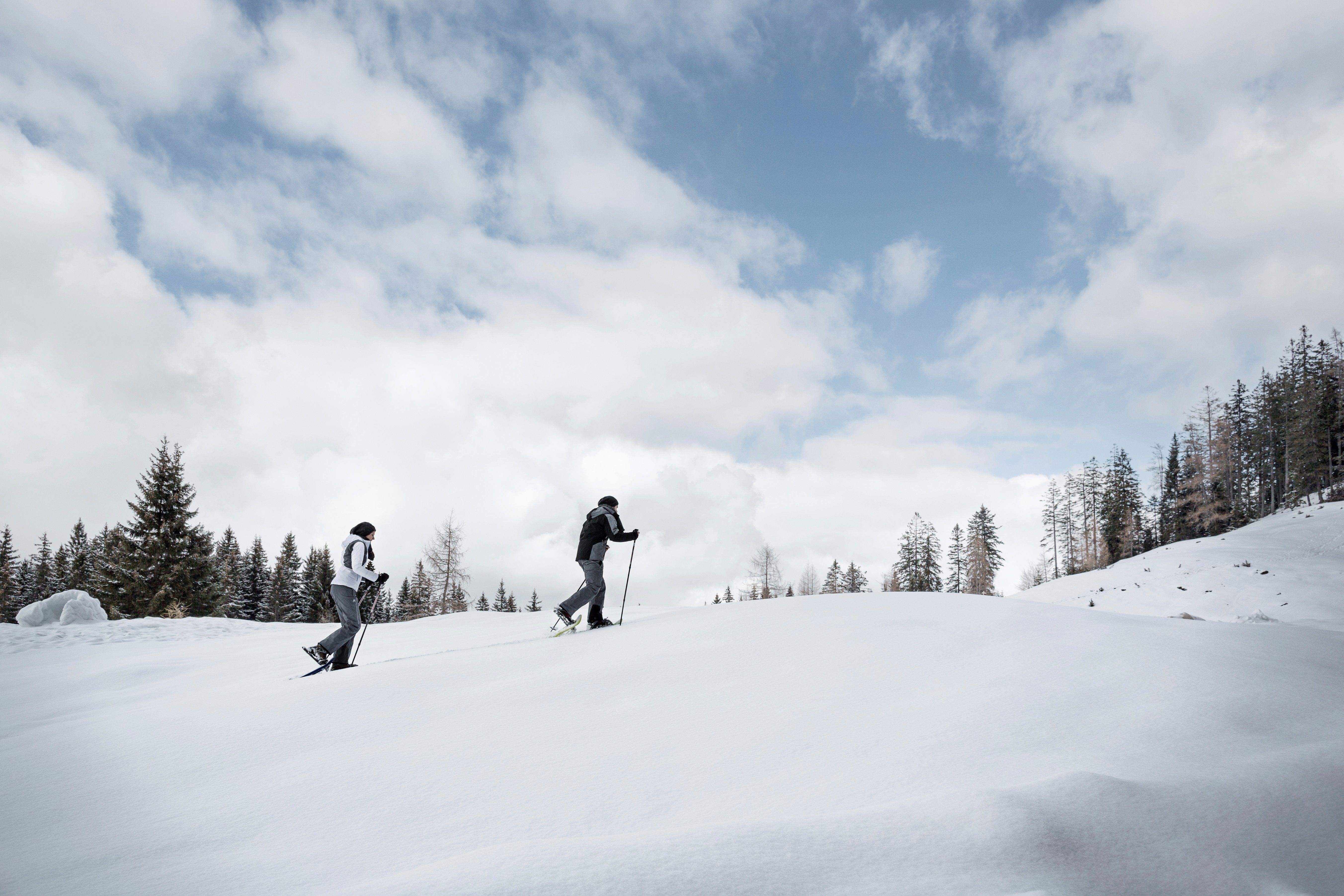 Op je sneeuwschoenen, klaar, af! Frisse winterlucht in je neus, stilte - afgezien van het gekraak onder je voeten en niets dan besneeuwde velden of bossen in de wijde omtrek: Een sneeuwschoenwandeling in een ongerept berglandschap is bijzonder ontspannend voor de geest.