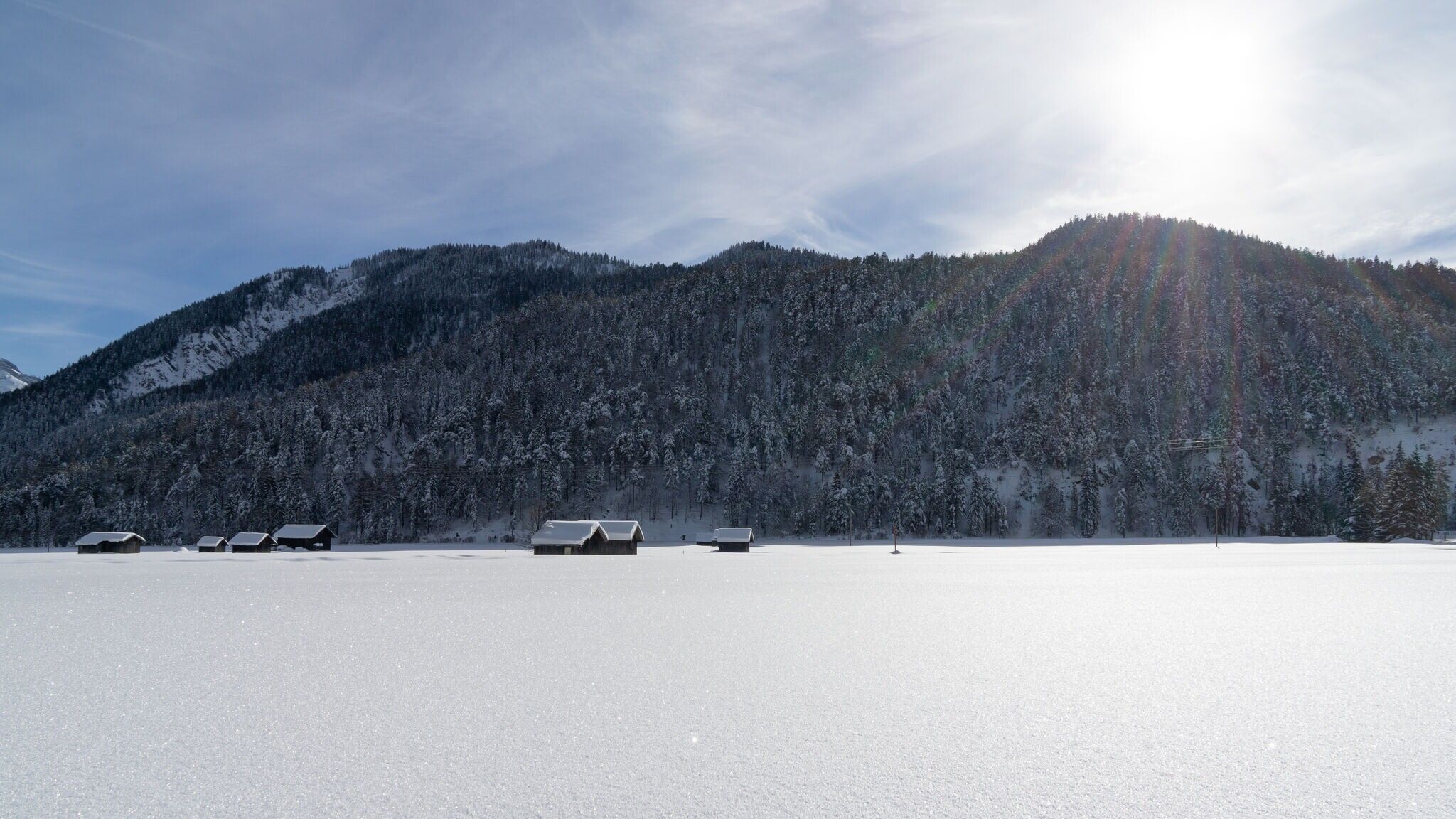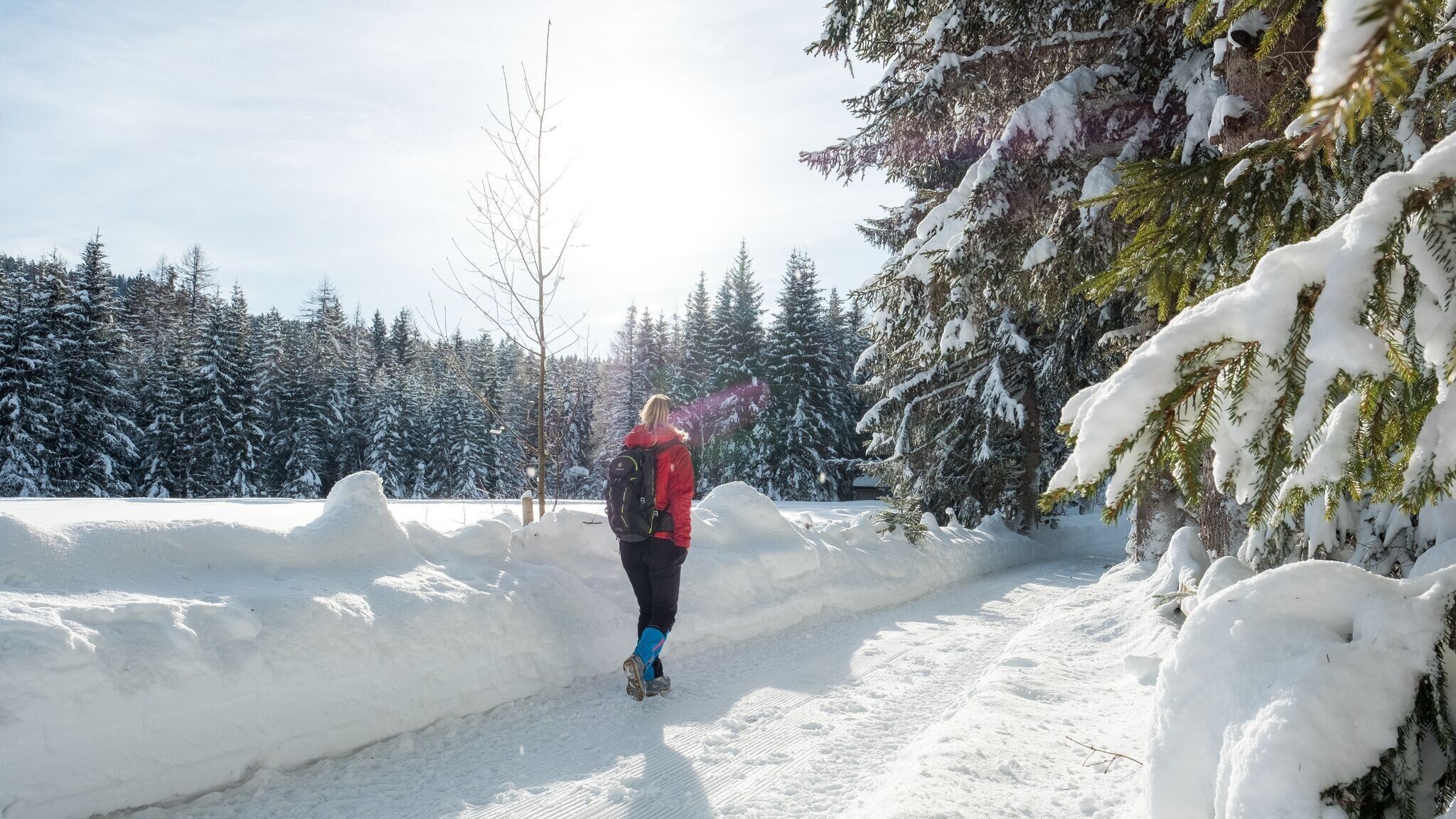 Tijdens de tweede etappe wandelt u ongeveer 12 km van de "Poort naar de Karwendel" in Scharnitz (bereikbaar met de trein) terug naar het centrum van Seefeld. De route blijft overwegend gemakkelijk, voert door besneeuwde bossen, rustige woonwijken en open winterlandschappen en biedt onderweg prachtige uitzichten op de omgeving. Met een stijging van ongeveer 270 meter is deze etappe goed te doen voor wandelaars met een basisconditie en nodigt hij uit tot korte pauzes en verfrissingen onderweg voordat hij eindigt bij het treinstation van Seefeld. Optioneel met een uur te verlengen via de Riedboden met vertrek in Mittenwald.