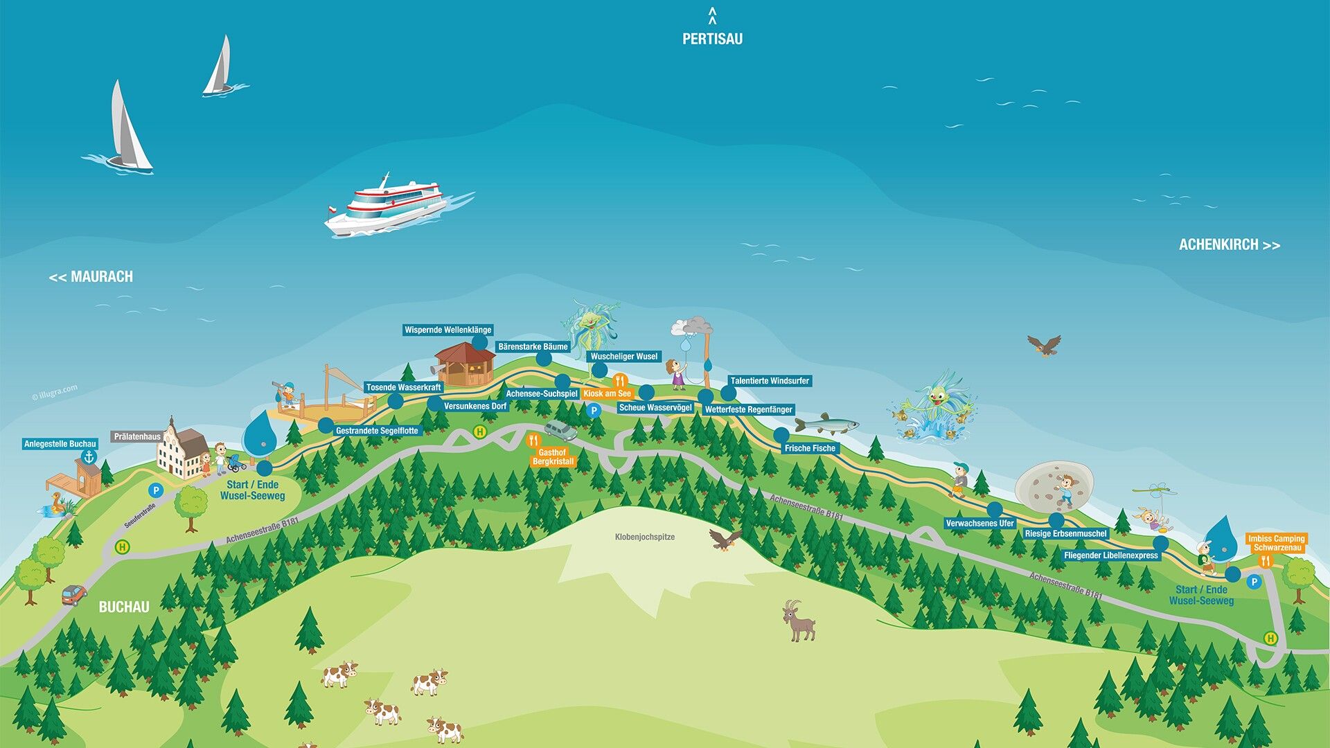 Er zijn verschillende excursiebestemmingen in de regio Achensee die gemakkelijk te bezoeken zijn voor mensen met beperkte mobiliteit. Er zijn ook handbikeroutes en rolstoelwandelingen rond het meer.